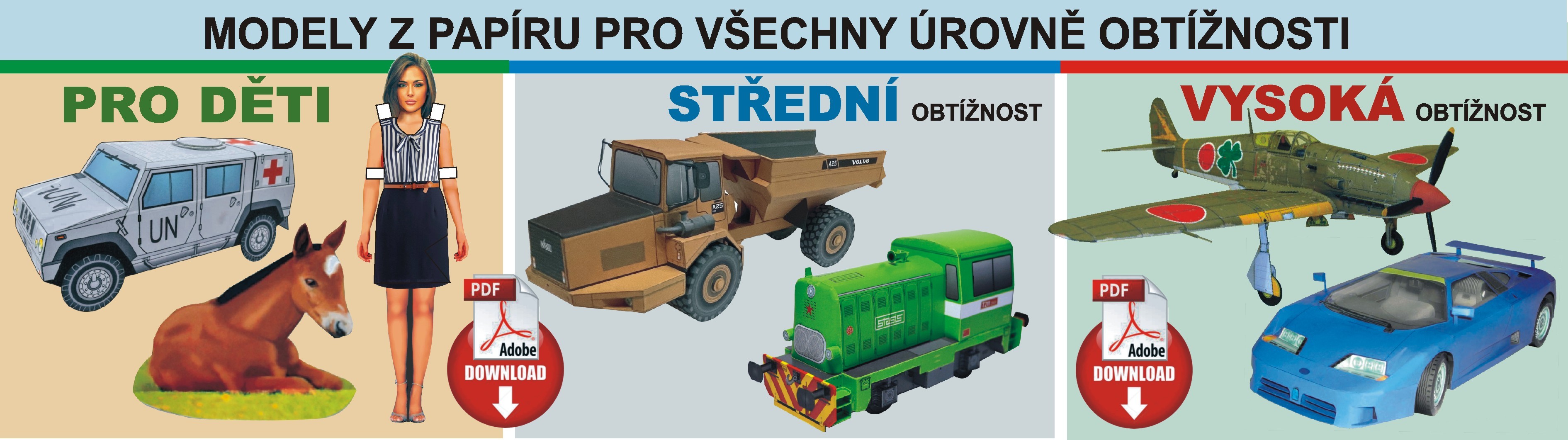 V naší nabídce najdete cokoliv z papíru pro všechny, stačí zakoupit PDF, vytisknout a hurá skládat!